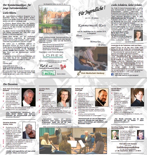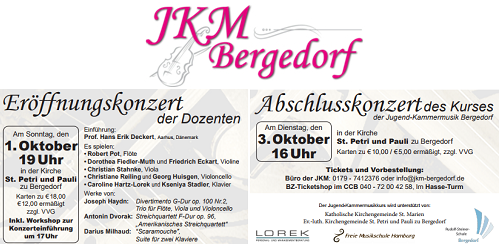 +++ HIGHLIGHT Herbst 2016 +++ Jugend-Kammermusik-Kurs-Bergedorf